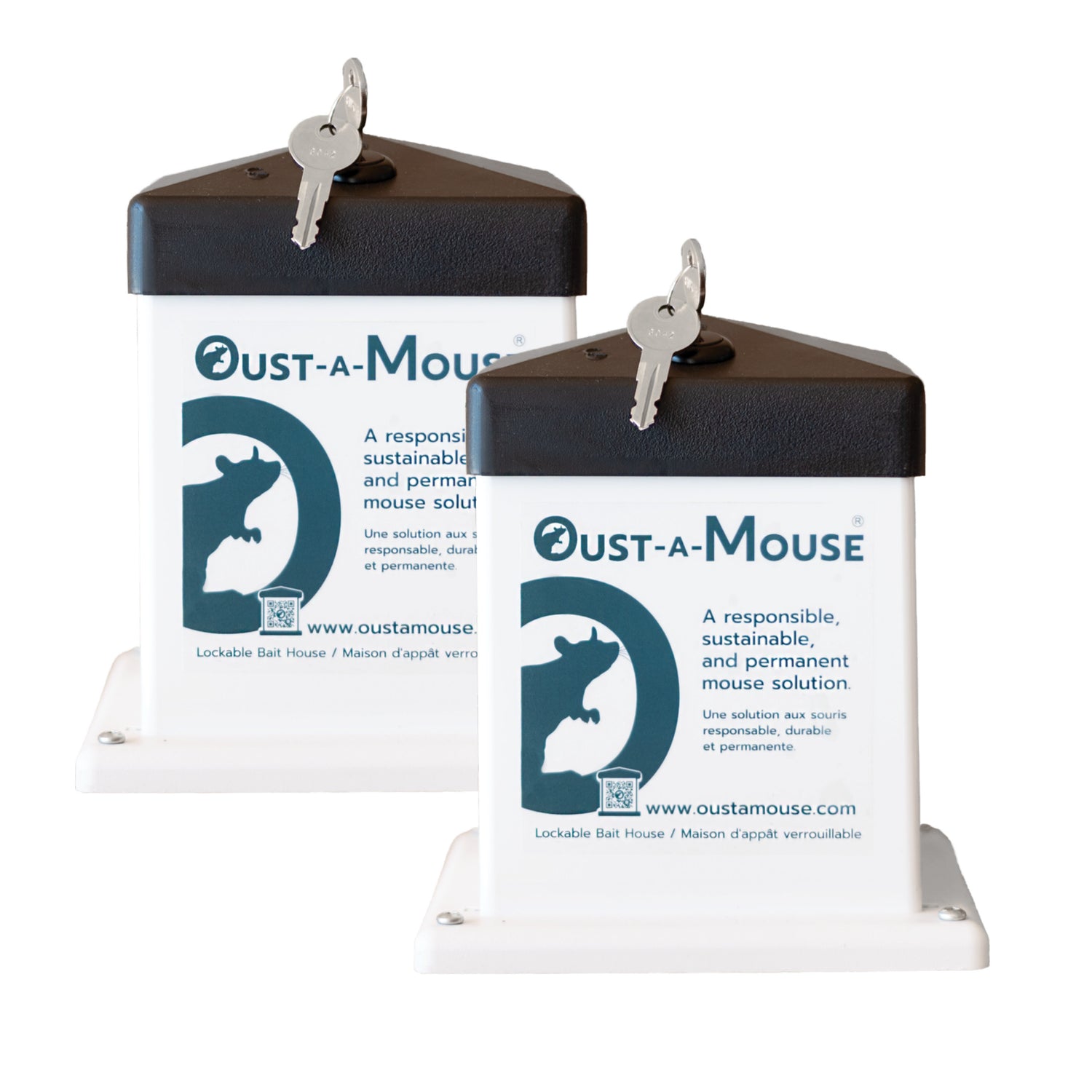 Oust-A-Mouse® is not a mouse trap. Instead, it's a durable, weatherproof, tamper-resistant bait house designed to be secured outside to pull mice from indoors and prevent future mice from entering buildings. Its lockable lid prevents children, pets and other wildlife from